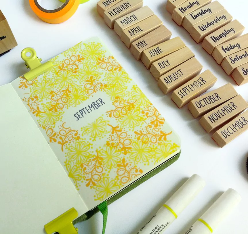 Set de Sellos Bullet Journal - Months/Days + 1 Mini Pad color Negro.