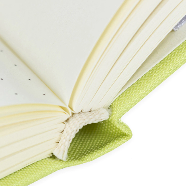 Hermosa libreta de tapa dura, color Lima, simil tela.
