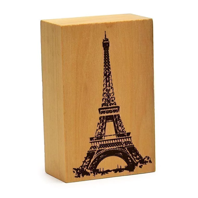 Sello decorativo en bloque de madera, diseño "Torre Eiffel".