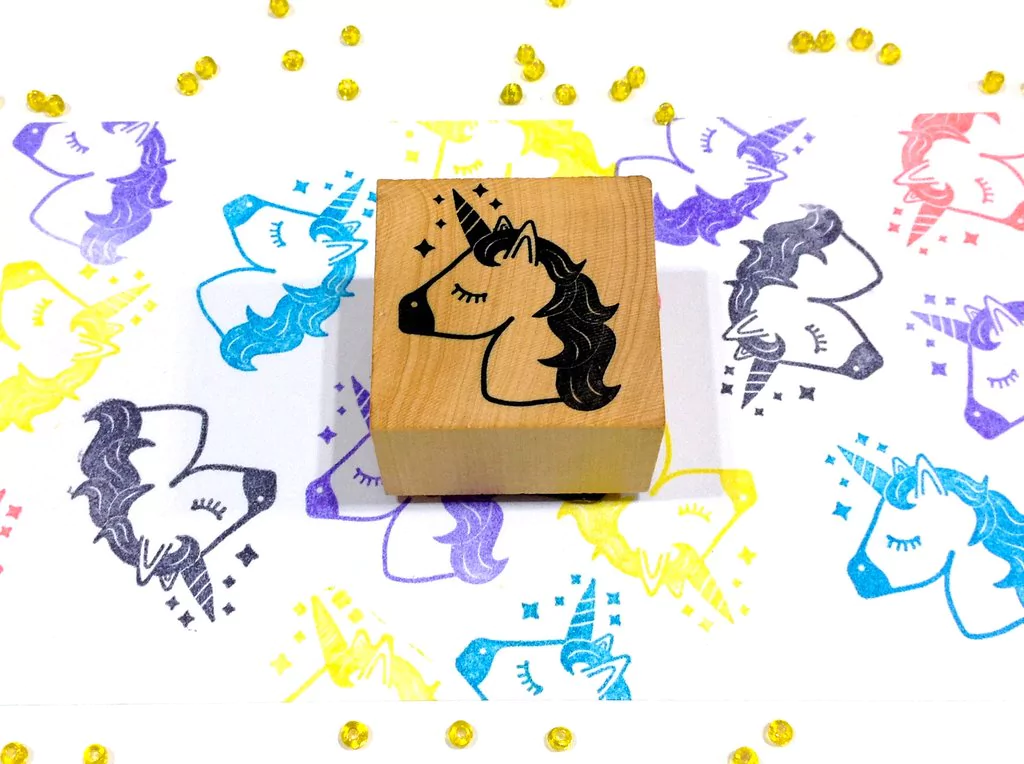 Sello decorativo en bloque de madera, diseño "Unicornio".