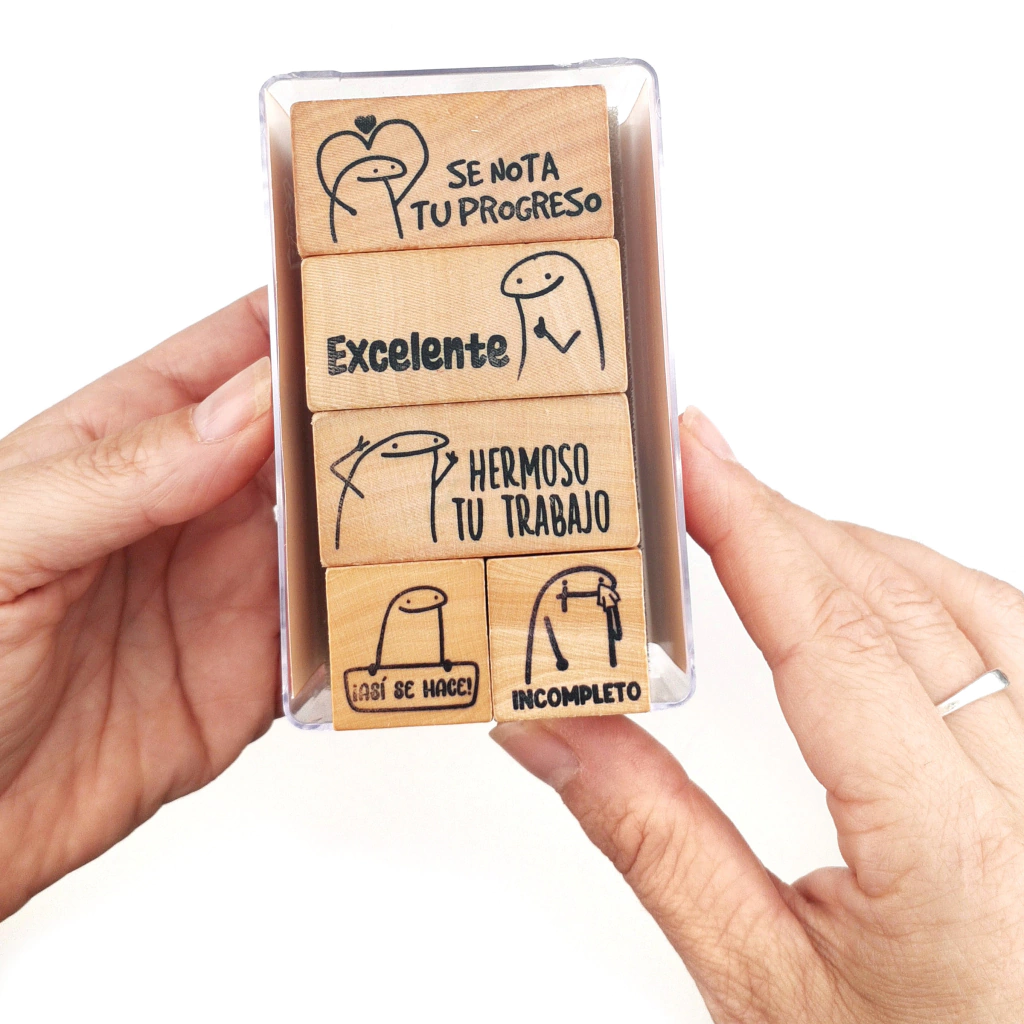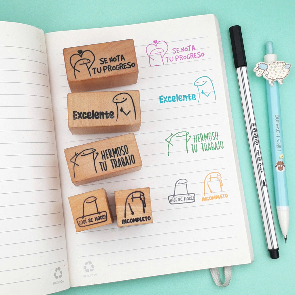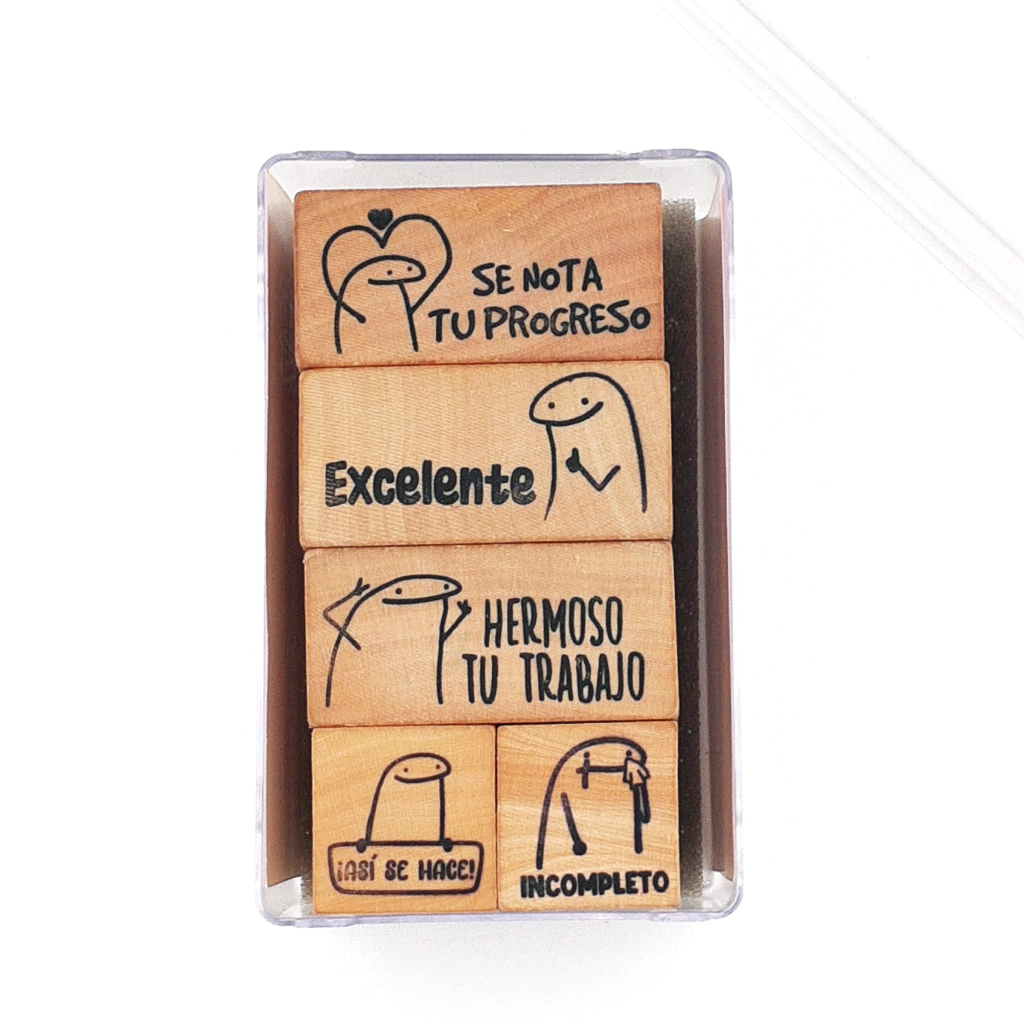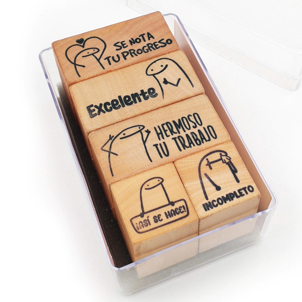Correcciones más creativas y motivadoras con este set de sellos decorativos en bloques de madera, diseñados especialmente para docentes. Cada sello incluye frases positivas para evaluar el trabajo de los alumnos de manera divertida y personalizada.