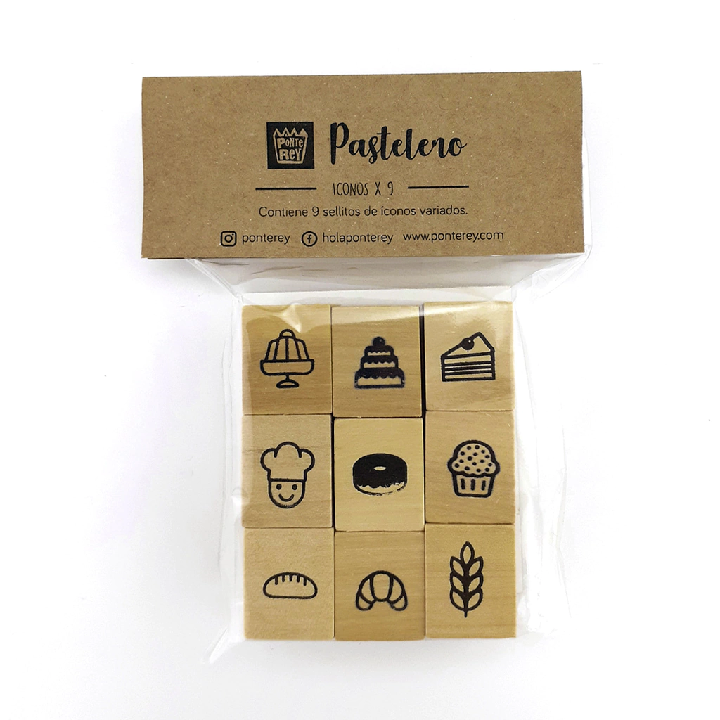 Set de sellos en bloques de madera, tema "Iconos ¨Pastelero".